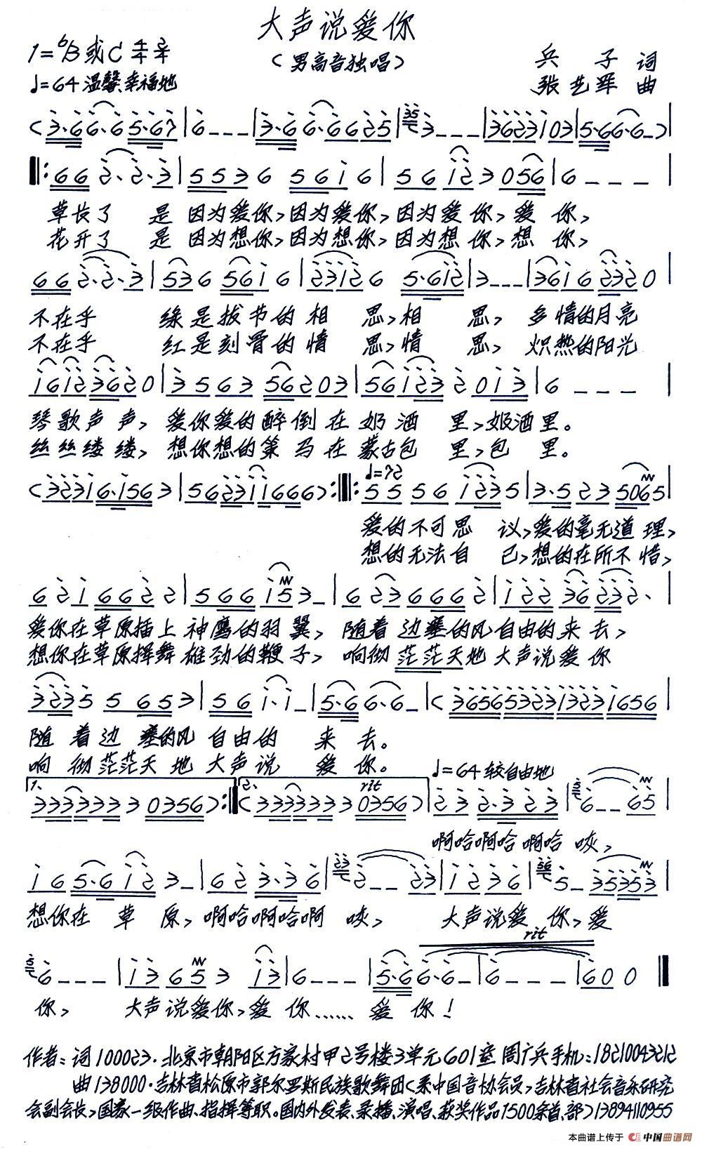 致谢:《中国曲谱网》衷心感谢作者老师馈赠原版歌谱!