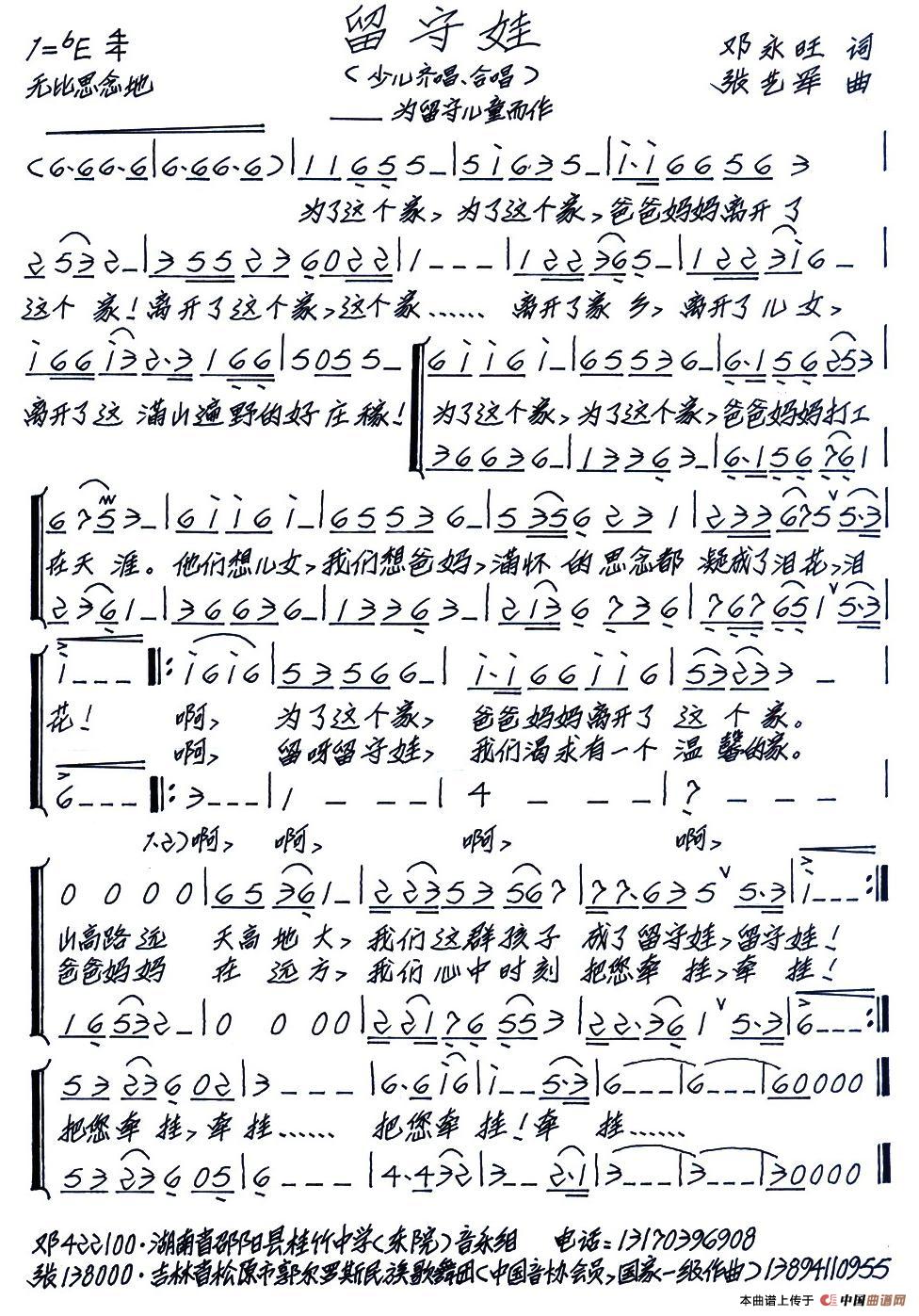 关于《留守娃》曲谱的评论