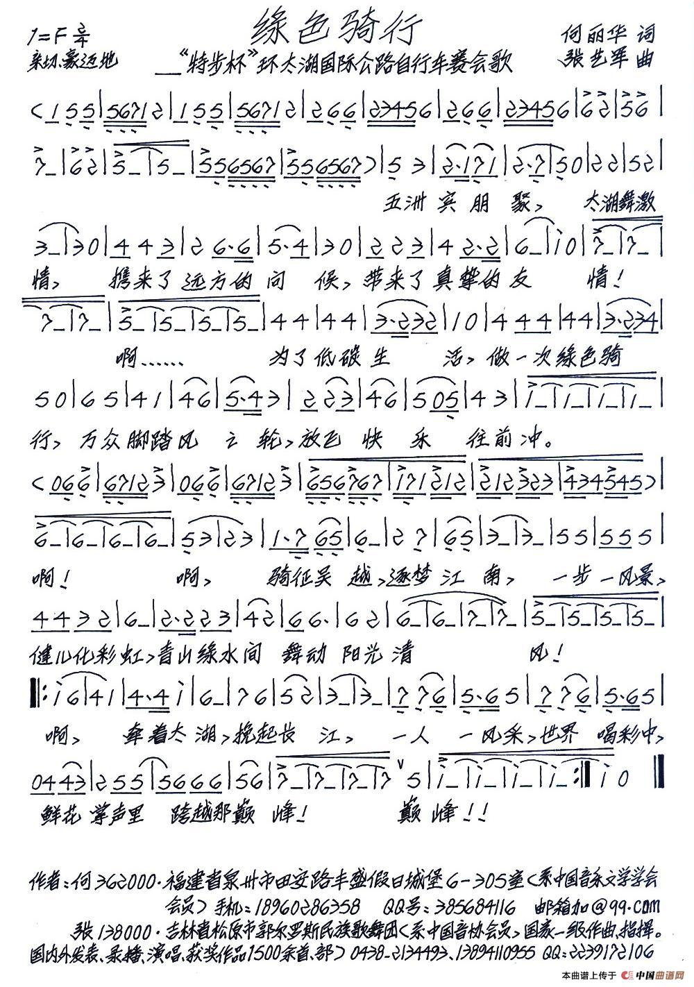 致谢:《中国曲谱网》衷心感谢作者老师馈赠原版歌谱!