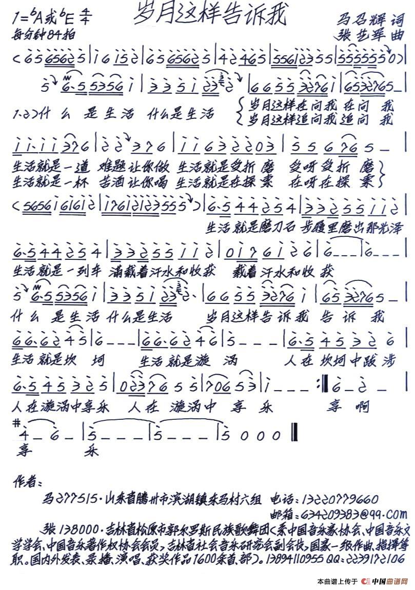 致谢:《中国曲谱网》衷心感谢作者老师馈赠原版歌谱!