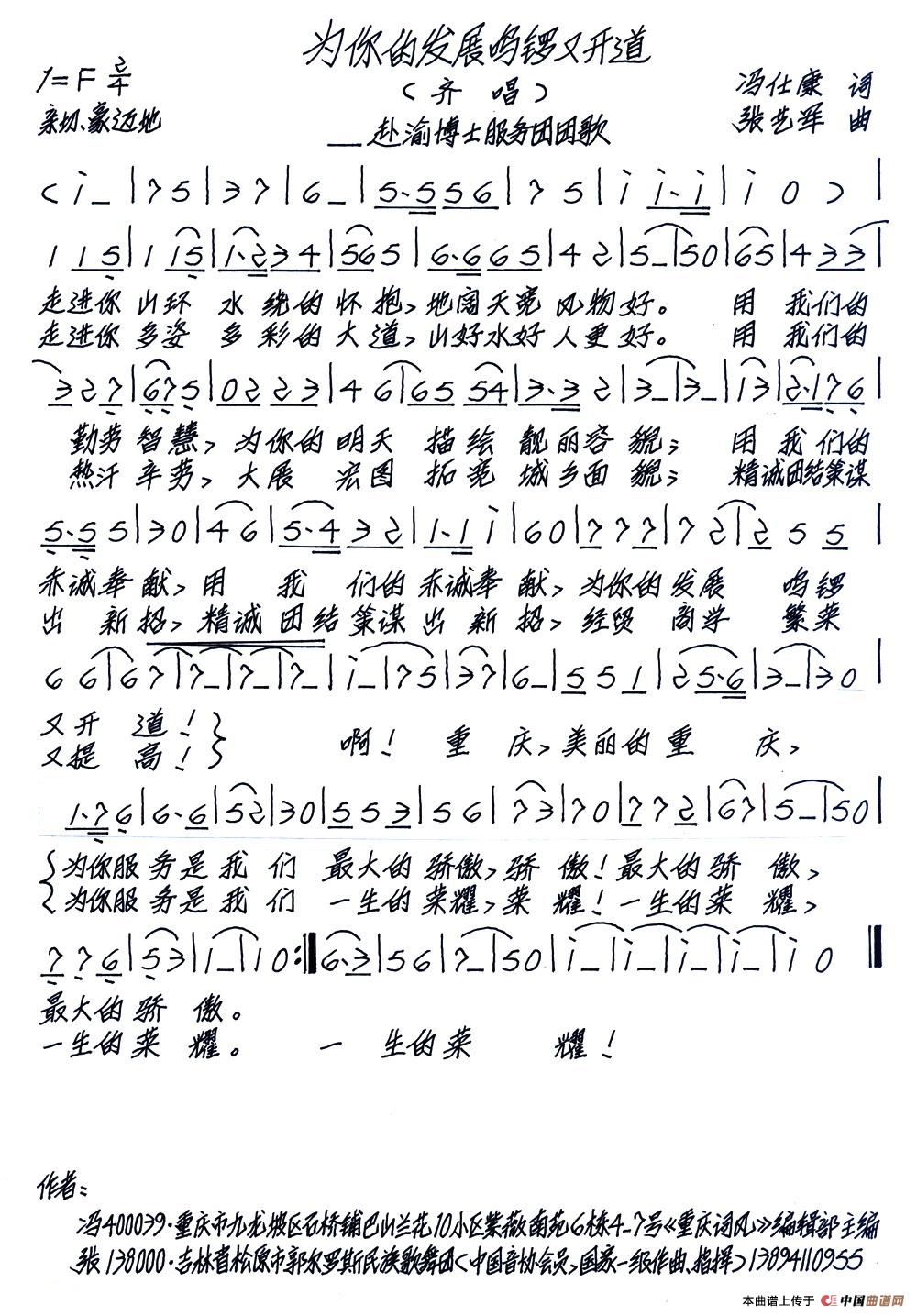 关于《为你的发展鸣锣又开道》曲谱的评论