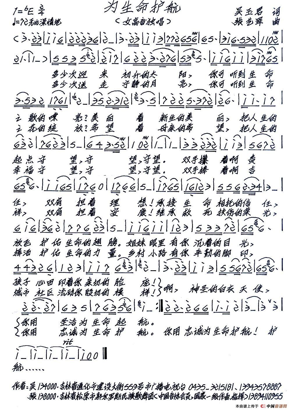 致谢:《中国曲谱网》衷心感谢作者老师馈赠原版歌谱!