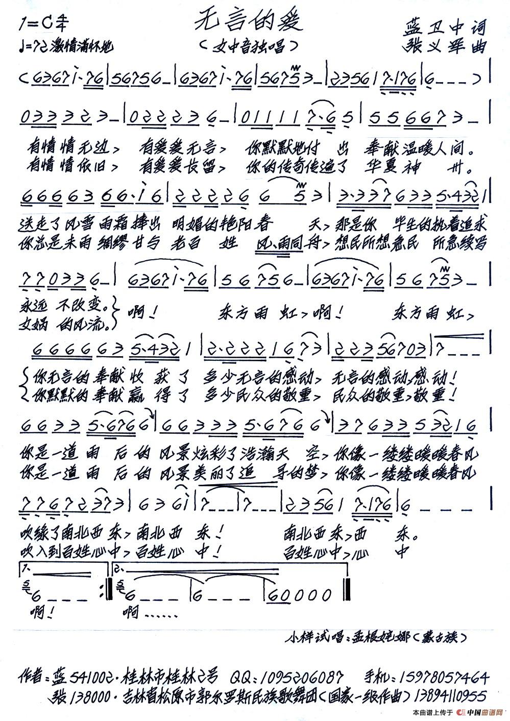 致谢:《中国曲谱网》衷心感谢作者老师馈赠原版歌谱!