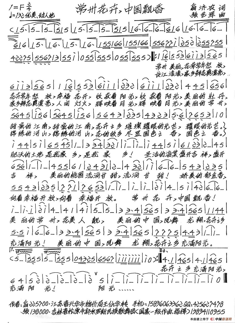 致谢:《中国曲谱网》衷心感谢作者老师馈赠原版歌谱!