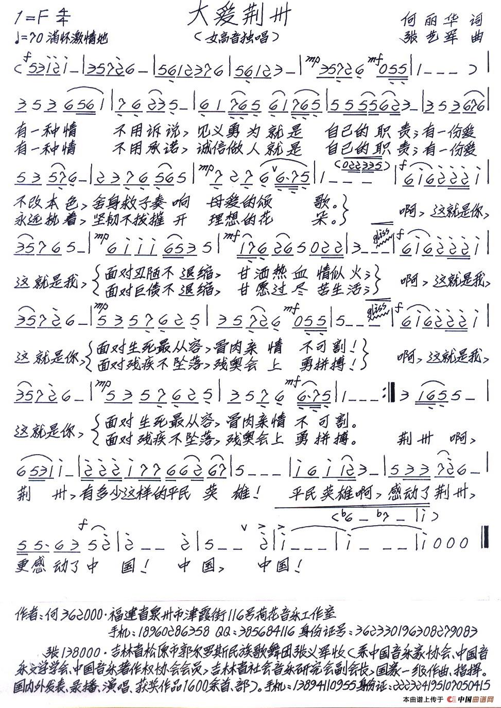 关于《大爱荆州》曲谱的评论