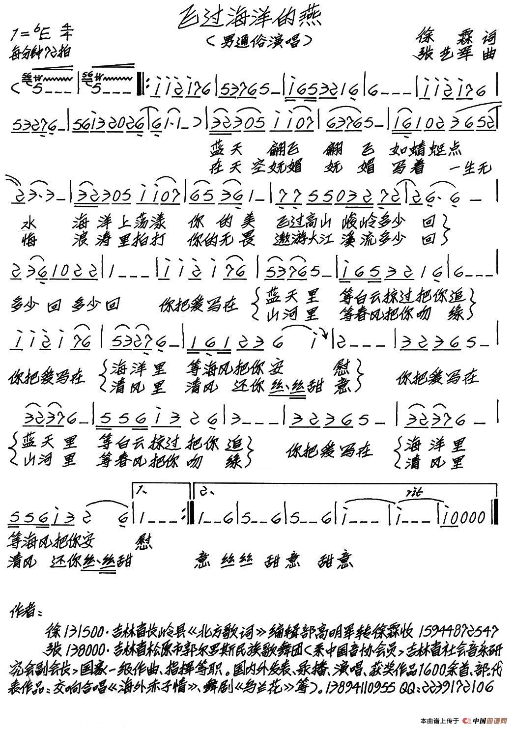致谢:《中国曲谱网》衷心感谢作者老师馈赠原版歌谱!