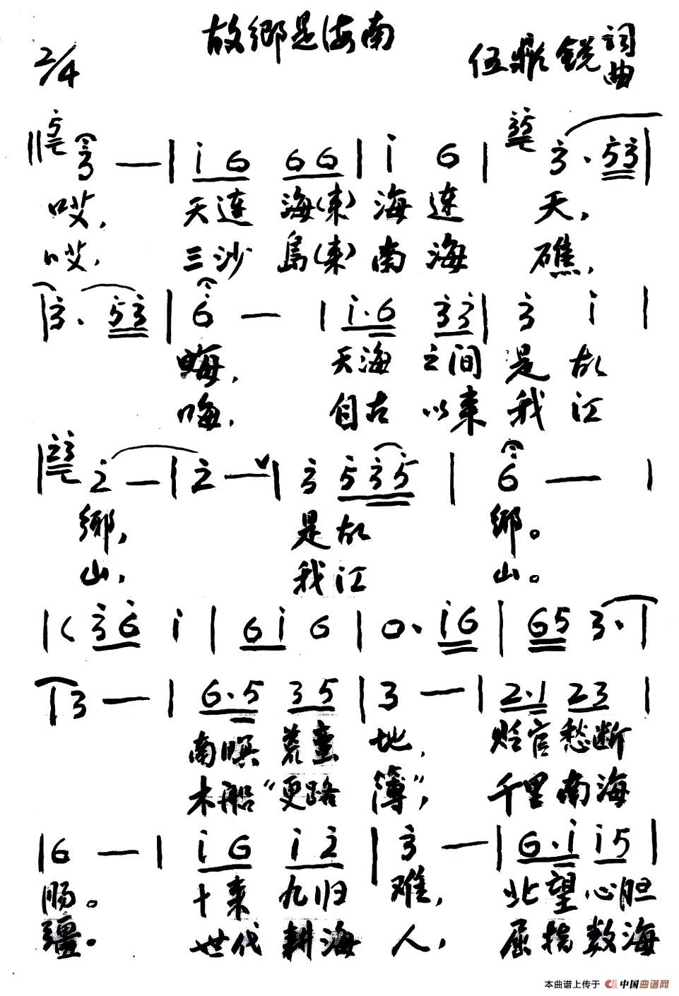 关于《故乡是海南》曲谱的评论