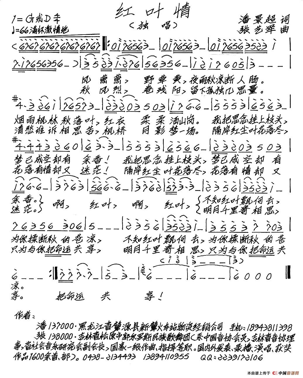 致谢:《中国曲谱网》衷心感谢作者老师馈赠原版歌谱!