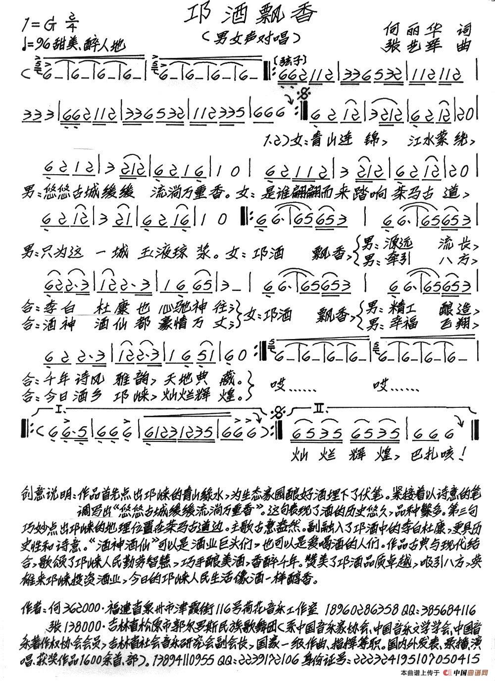 致谢:《中国曲谱网》衷心感谢作者老师馈赠原版歌谱!