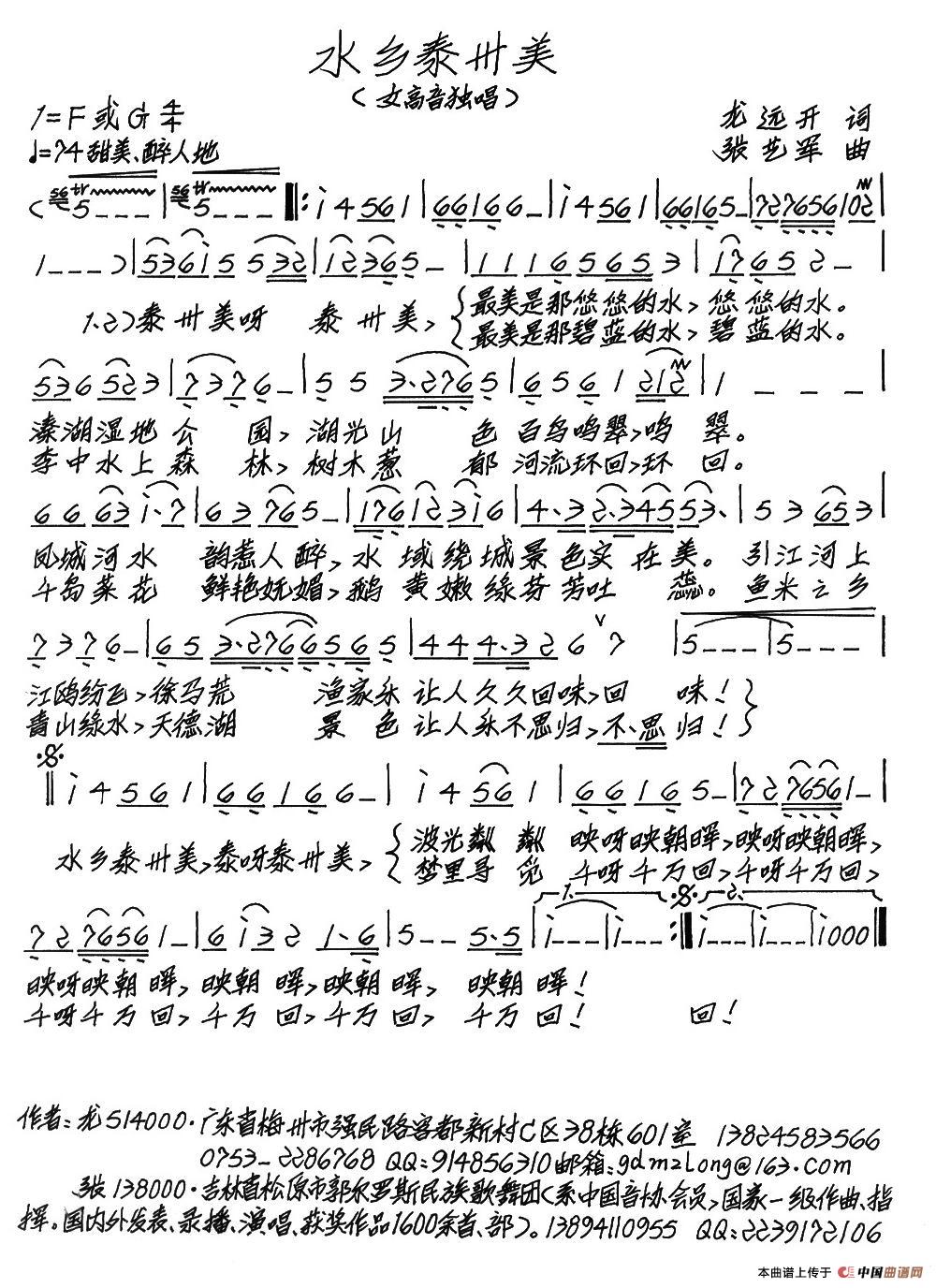 致谢:《中国曲谱网》衷心感谢作者老师馈赠原版歌谱!