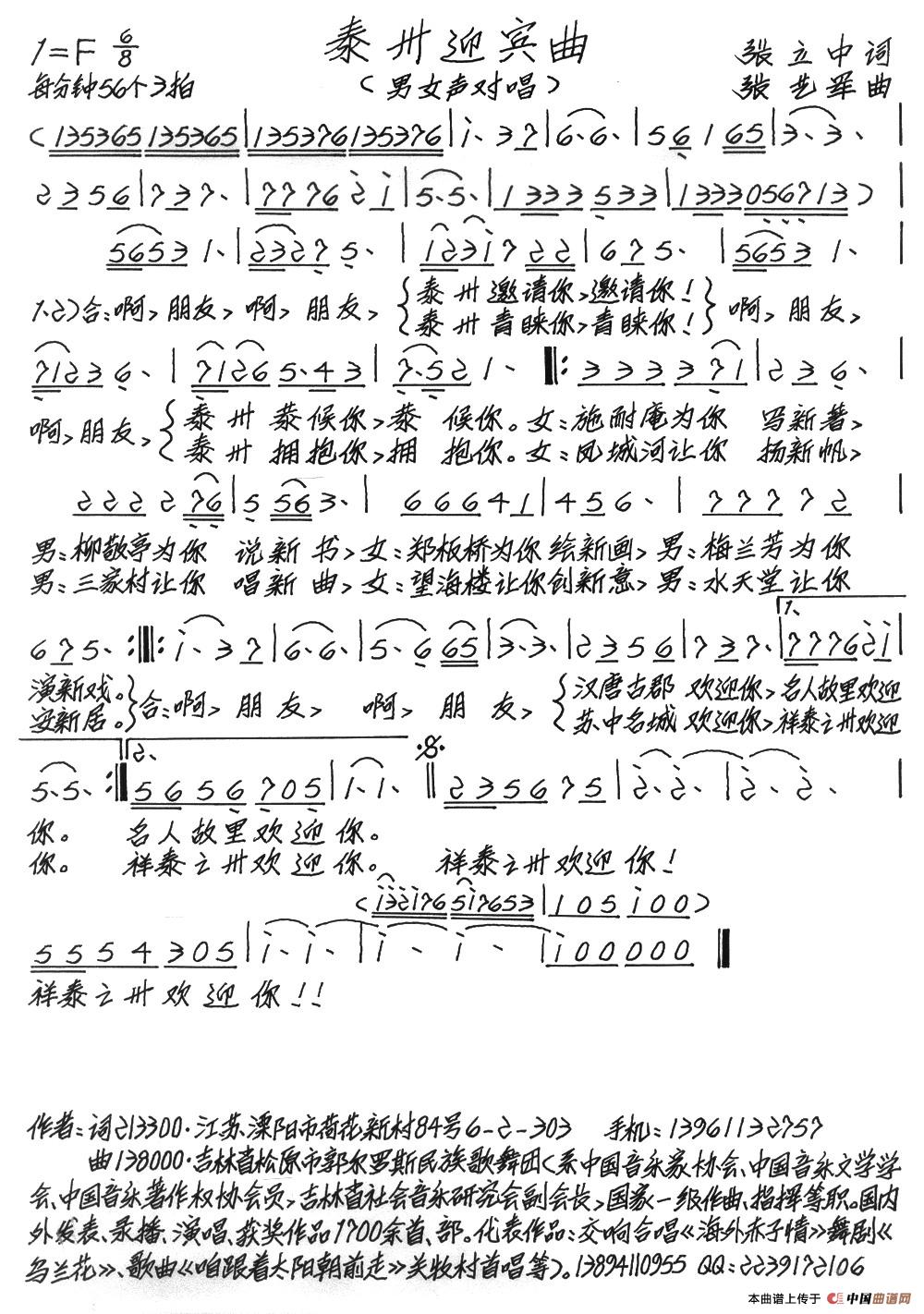 致谢:《中国曲谱网》衷心感谢作者老师馈赠原版歌谱!
