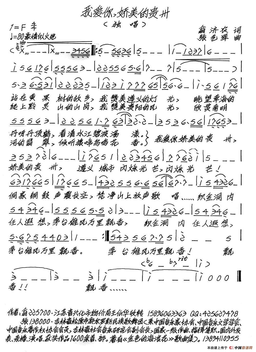 致谢:《中国曲谱网》衷心感谢作者老师馈赠原版歌谱!