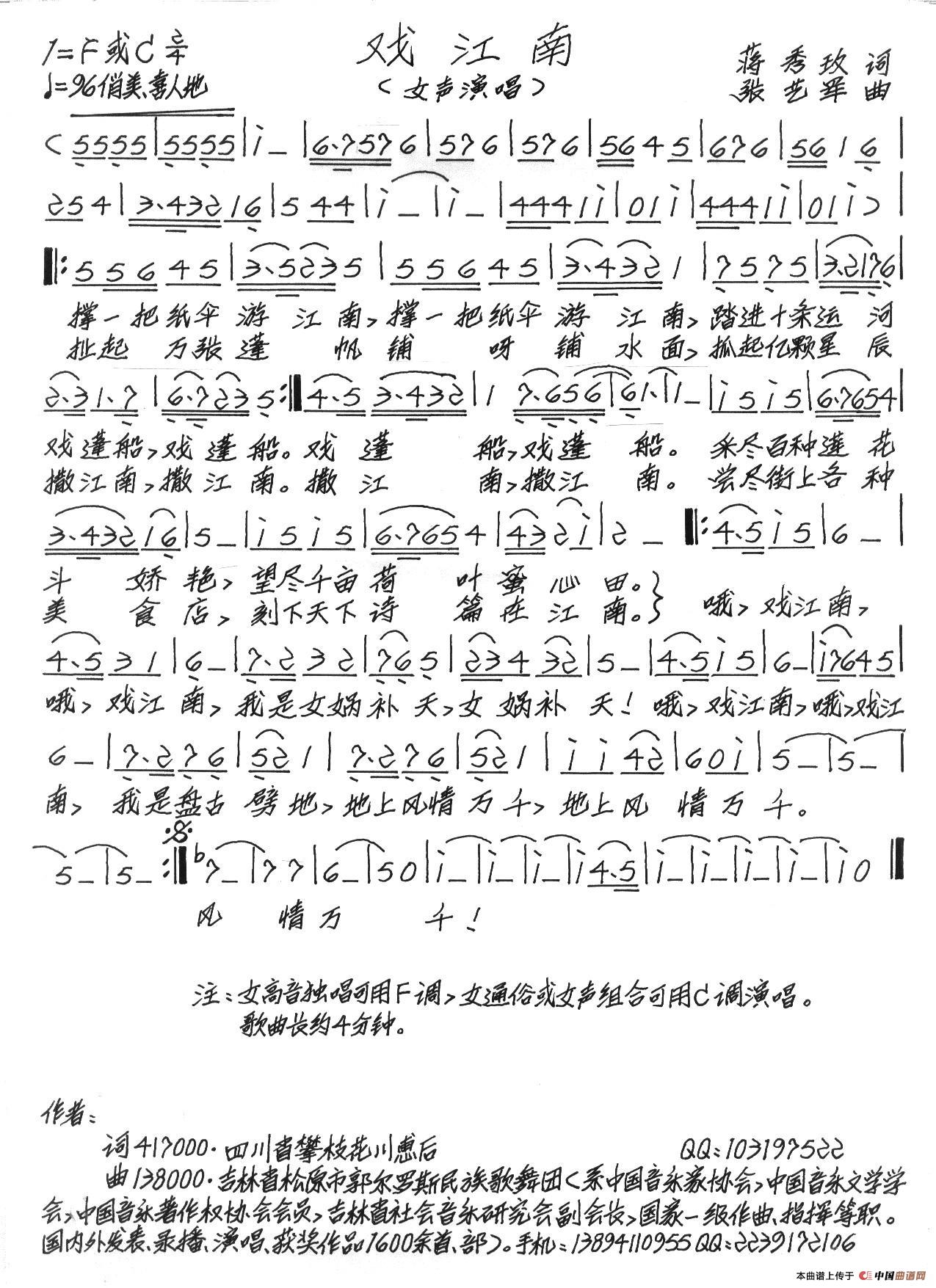 致谢:《中国曲谱网》衷心感谢作者老师馈赠原版歌谱!