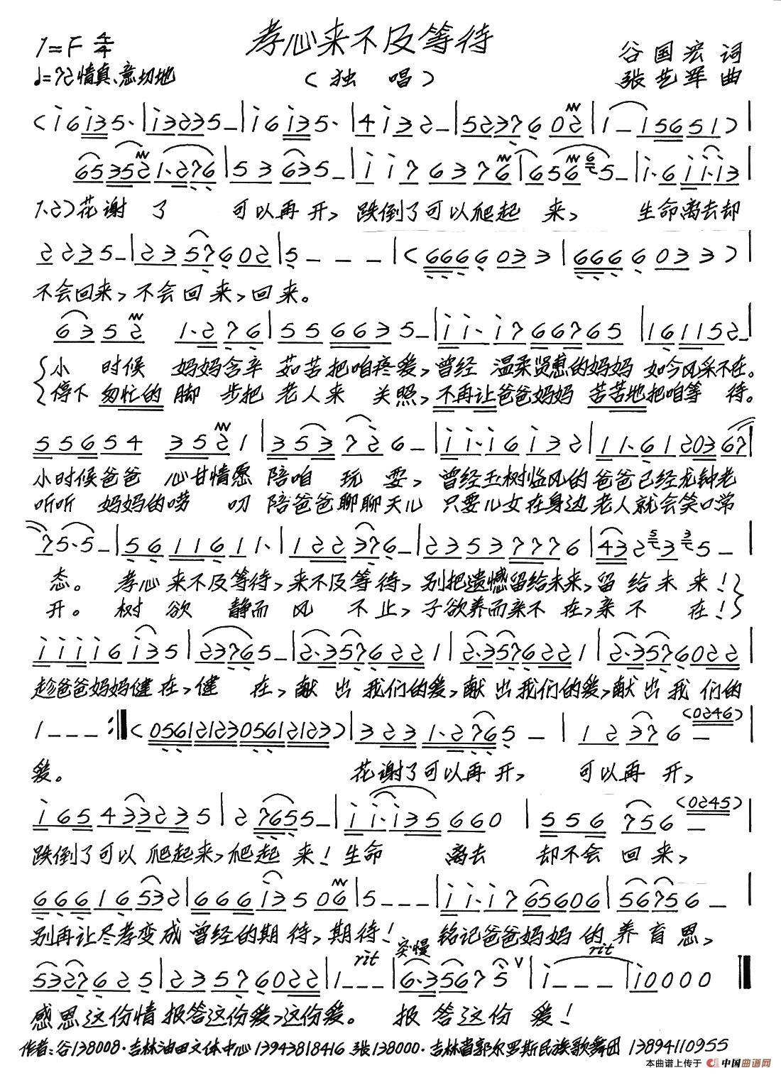 致谢:《中国曲谱网》衷心感谢作者老师馈赠原版歌谱!