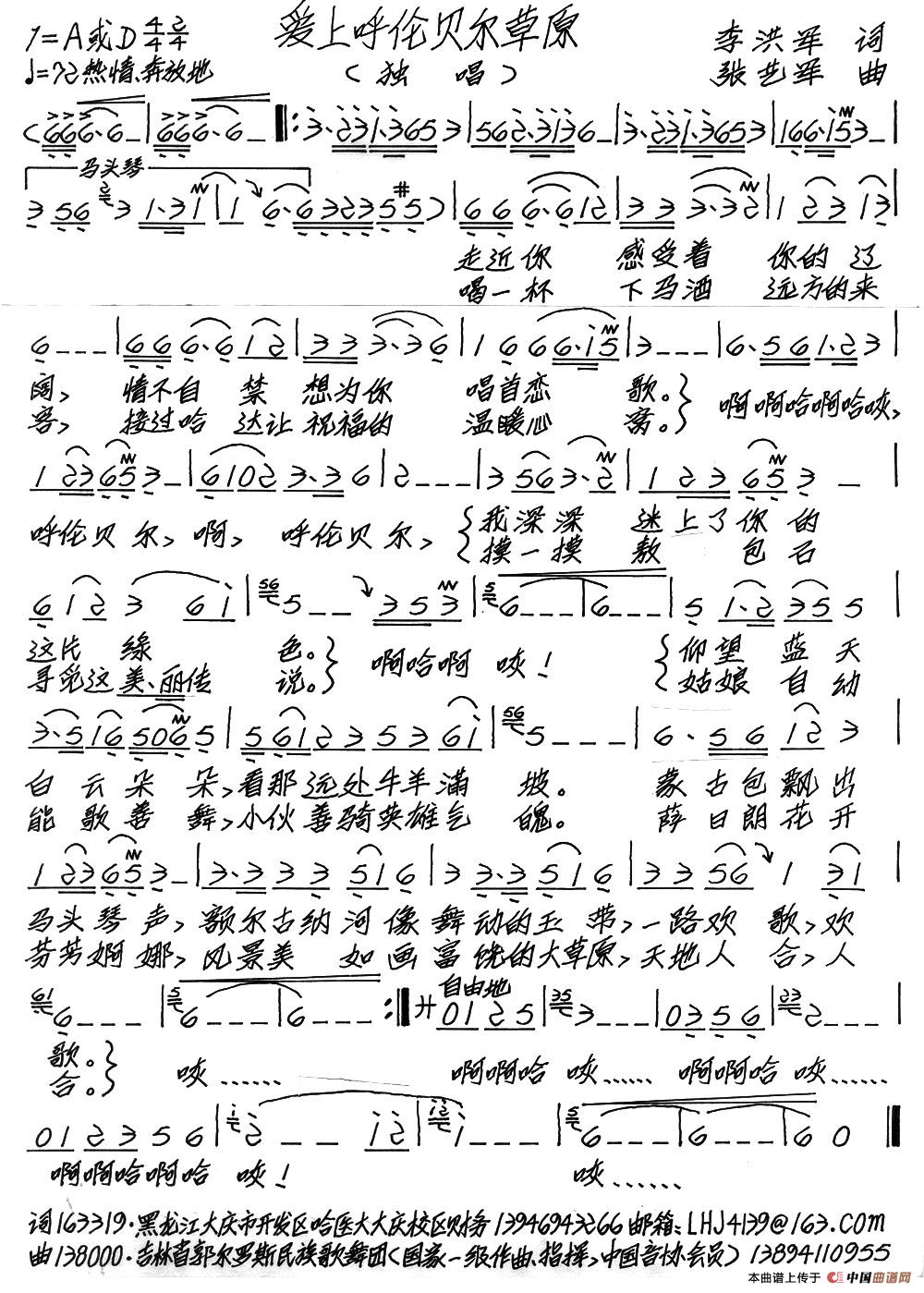 关于《爱上呼伦贝尔草原》曲谱的评论