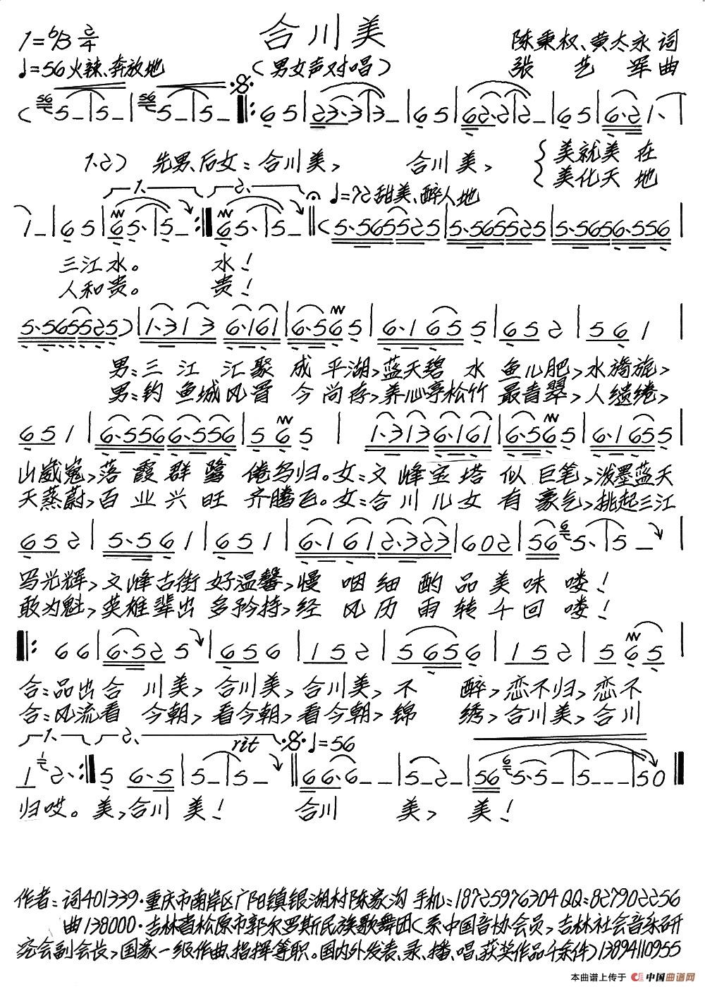 致谢:《中国曲谱网》衷心感谢作者老师馈赠原版歌谱!