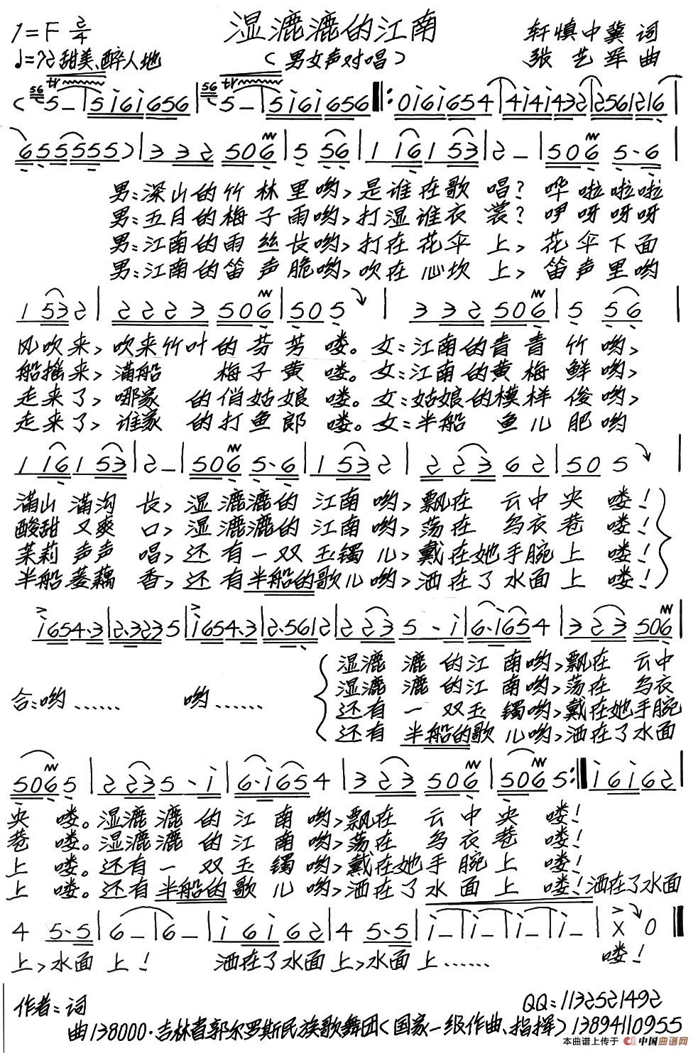致谢:《中国曲谱网》衷心感谢作者老师馈赠原版歌谱!