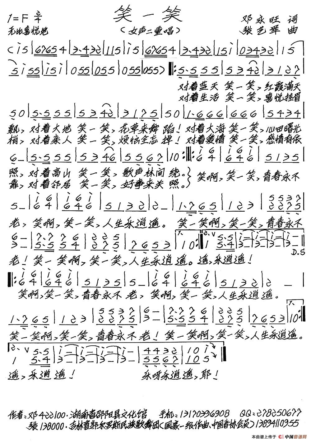 当前位置: 首页 谱友园地 手稿谱区 笑一笑(邓永旺词 张艺军曲)