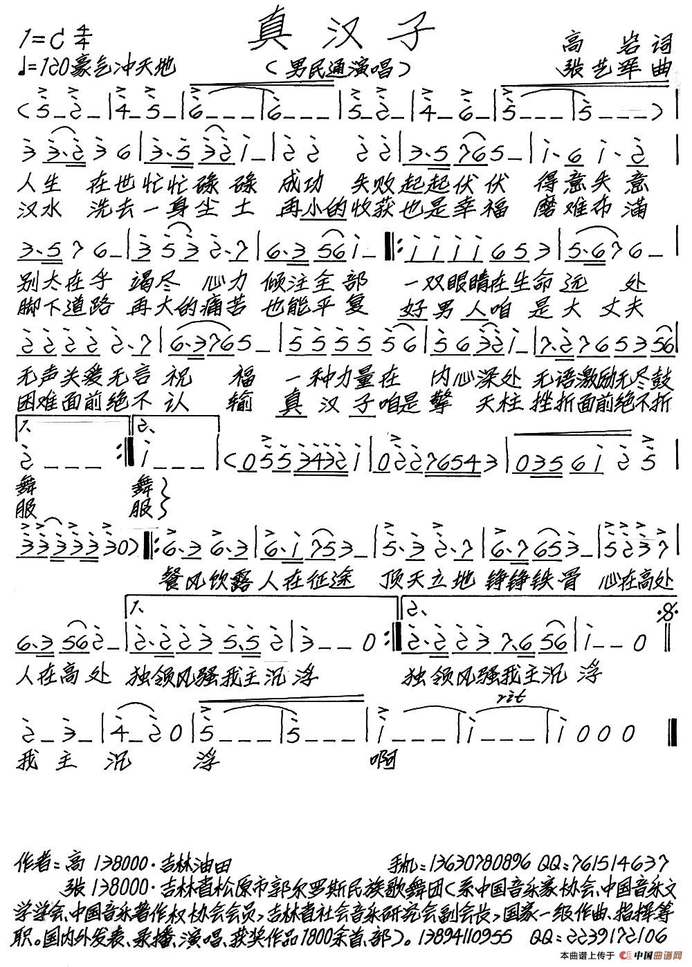 致谢:《中国曲谱网》衷心感谢作者老师馈赠原版歌谱!
