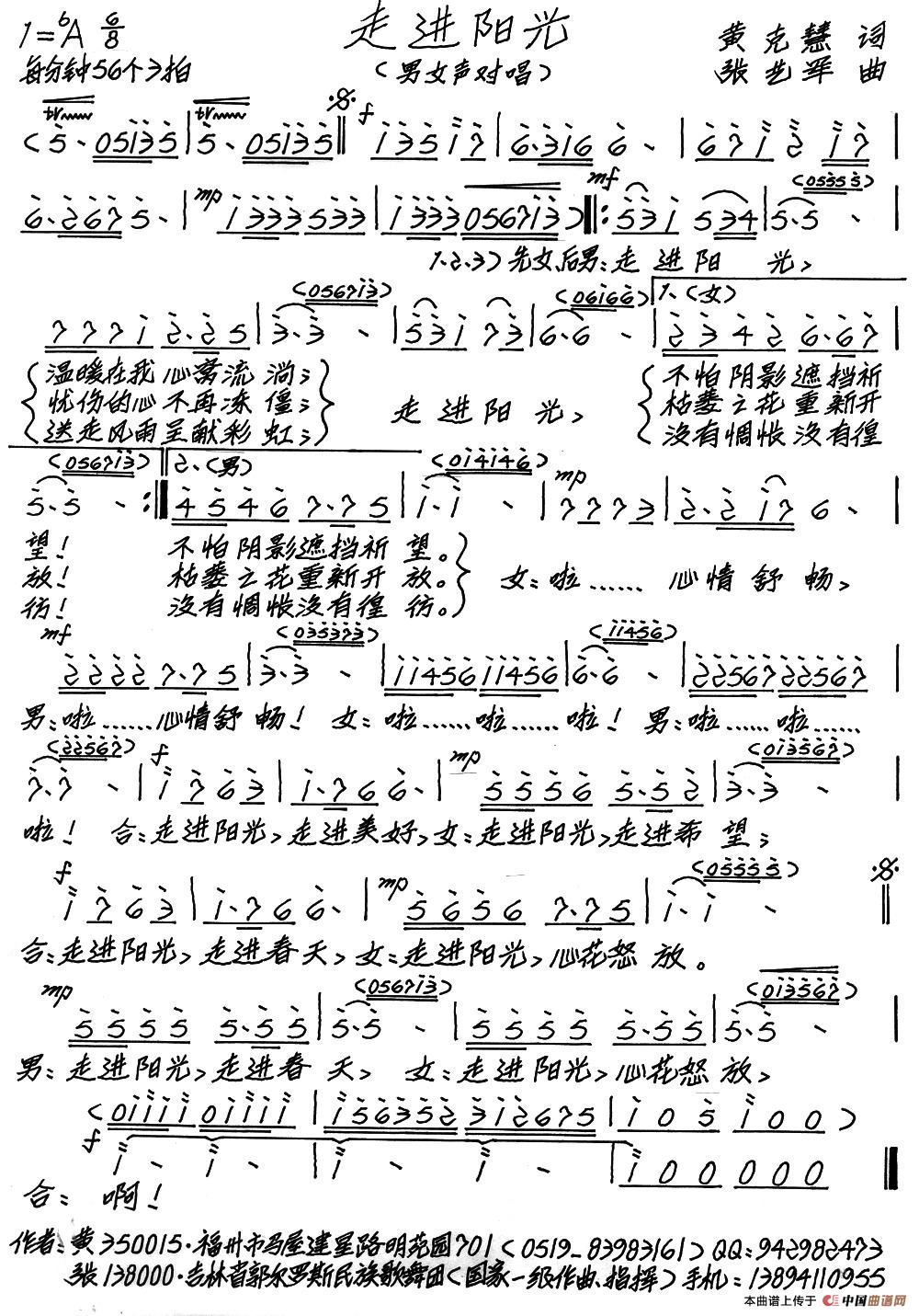 致谢:《中国曲谱网》衷心感谢作者老师馈赠原版歌谱!