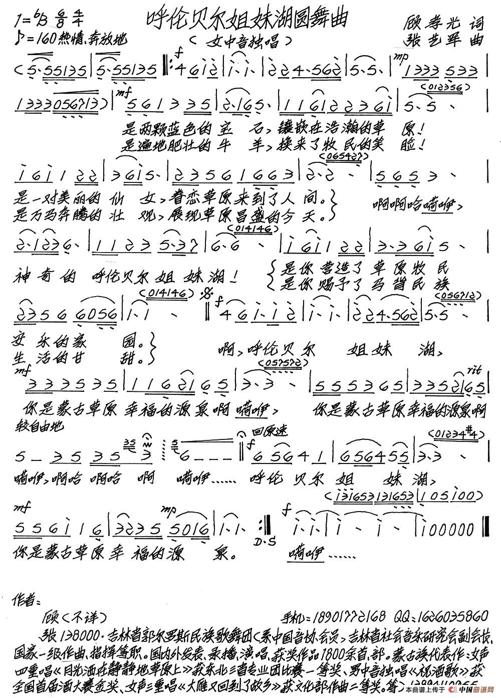 关于《呼伦贝尔姐妹湖圆舞曲》曲谱的评论