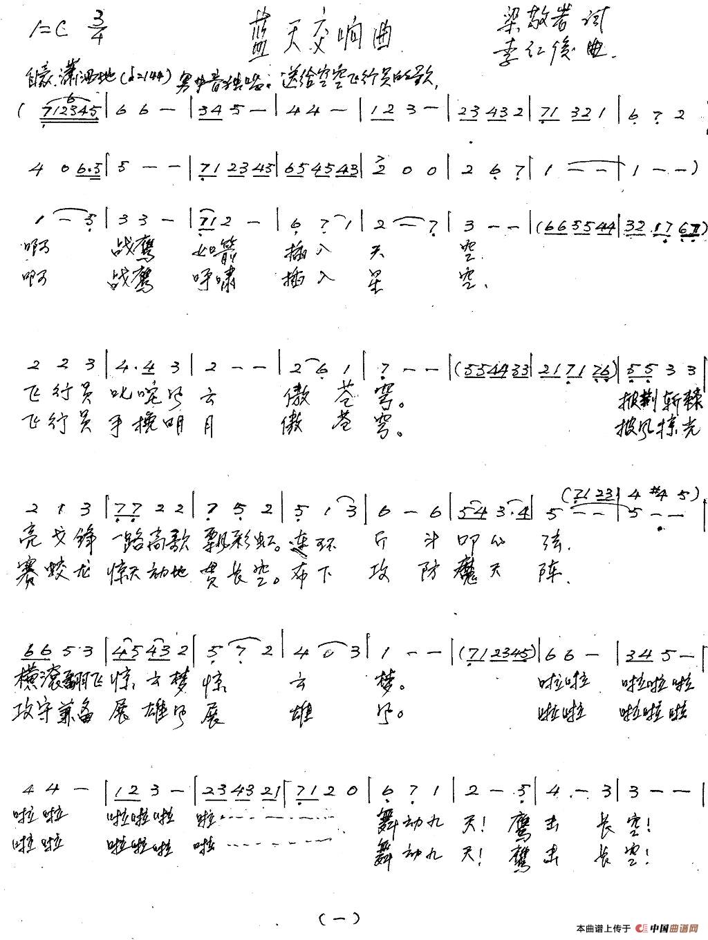 提示:在曲谱图片上单击右键,选择“图片另存为...”即可将曲谱保存到您的电脑中,打印时候可将图片插入到WORD中,调整合适大小打印即可。