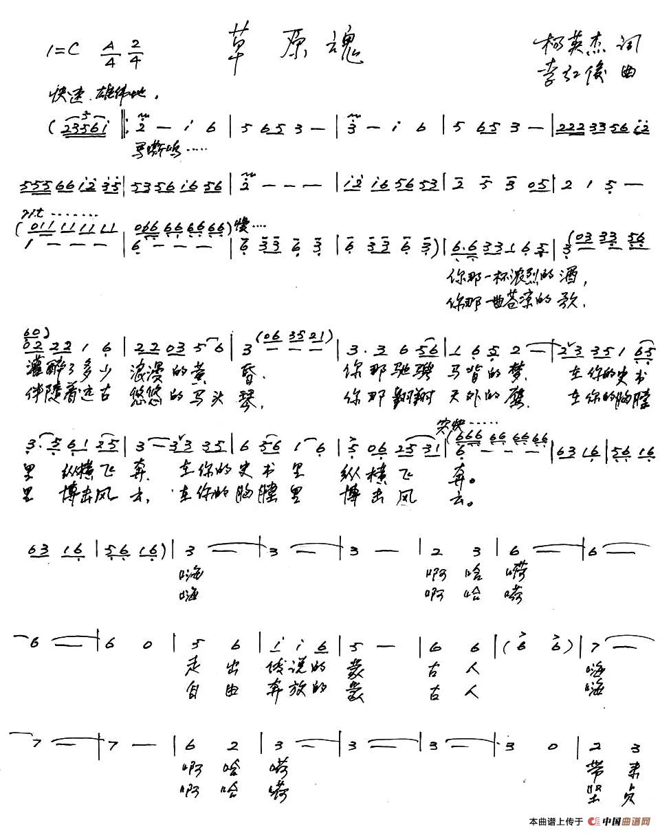 关于《草原魂》曲谱的评论