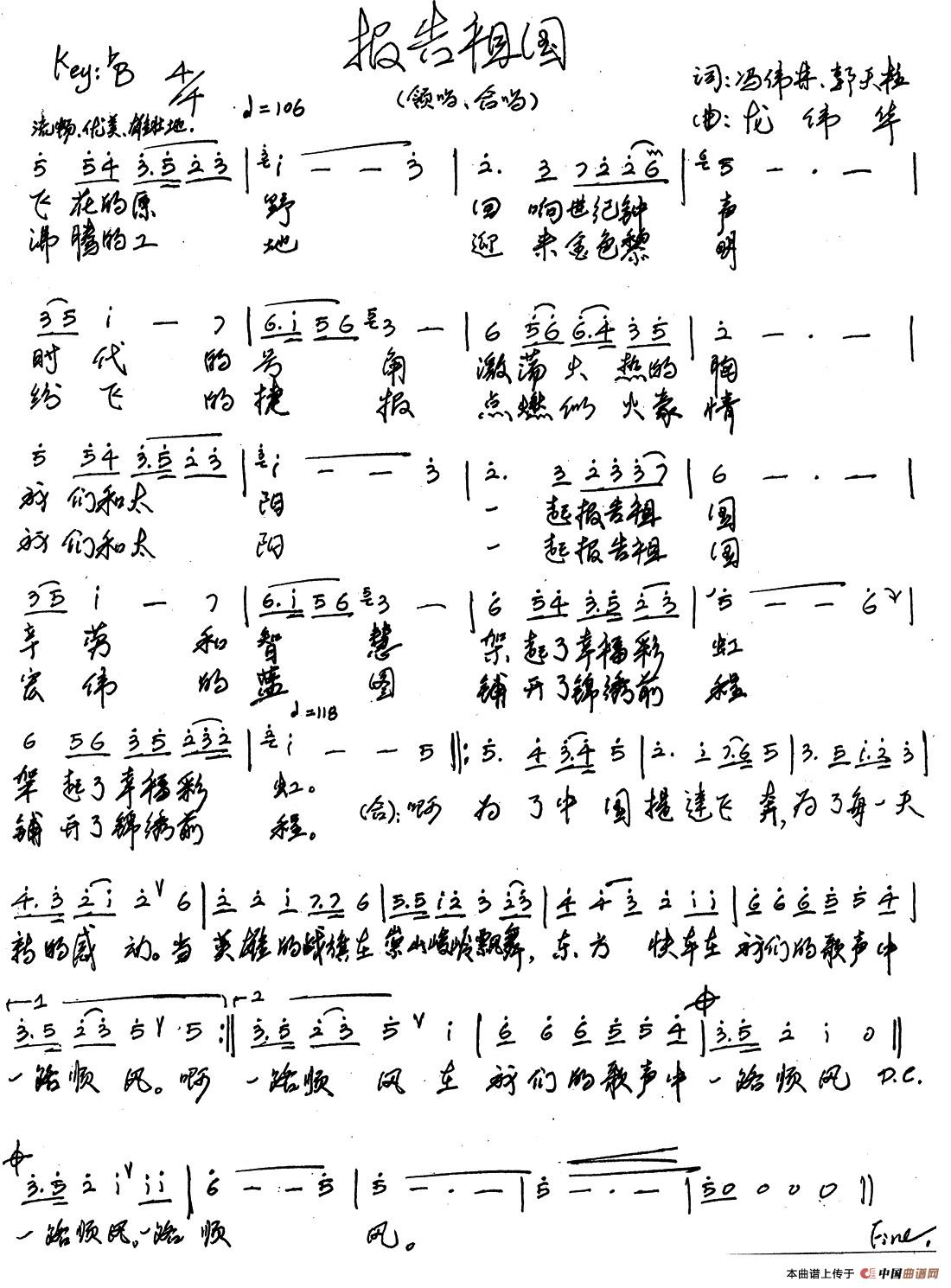 报告祖国(陈道斌词 金旭庚曲...