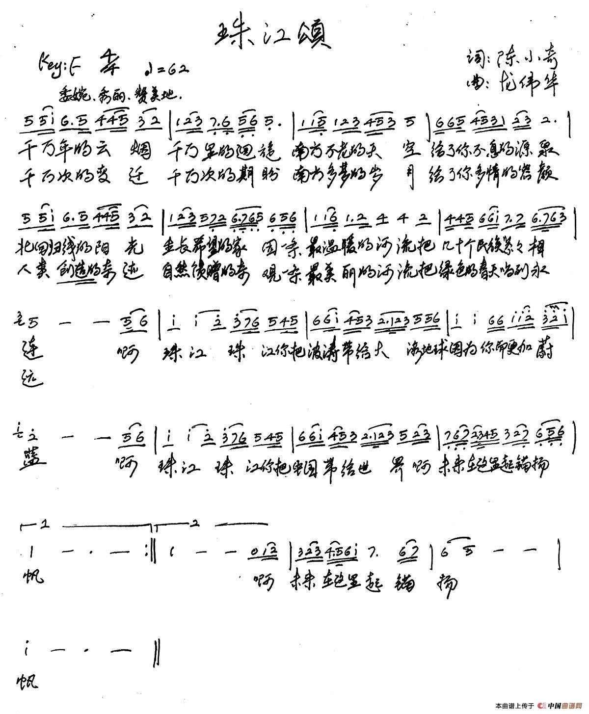 关于《珠江颂》曲谱的评论