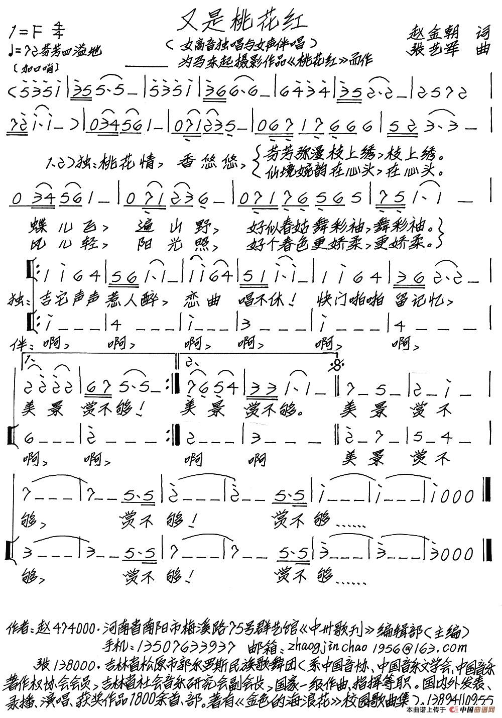 致谢:《中国曲谱网》衷心感谢作者老师馈赠原版歌谱!