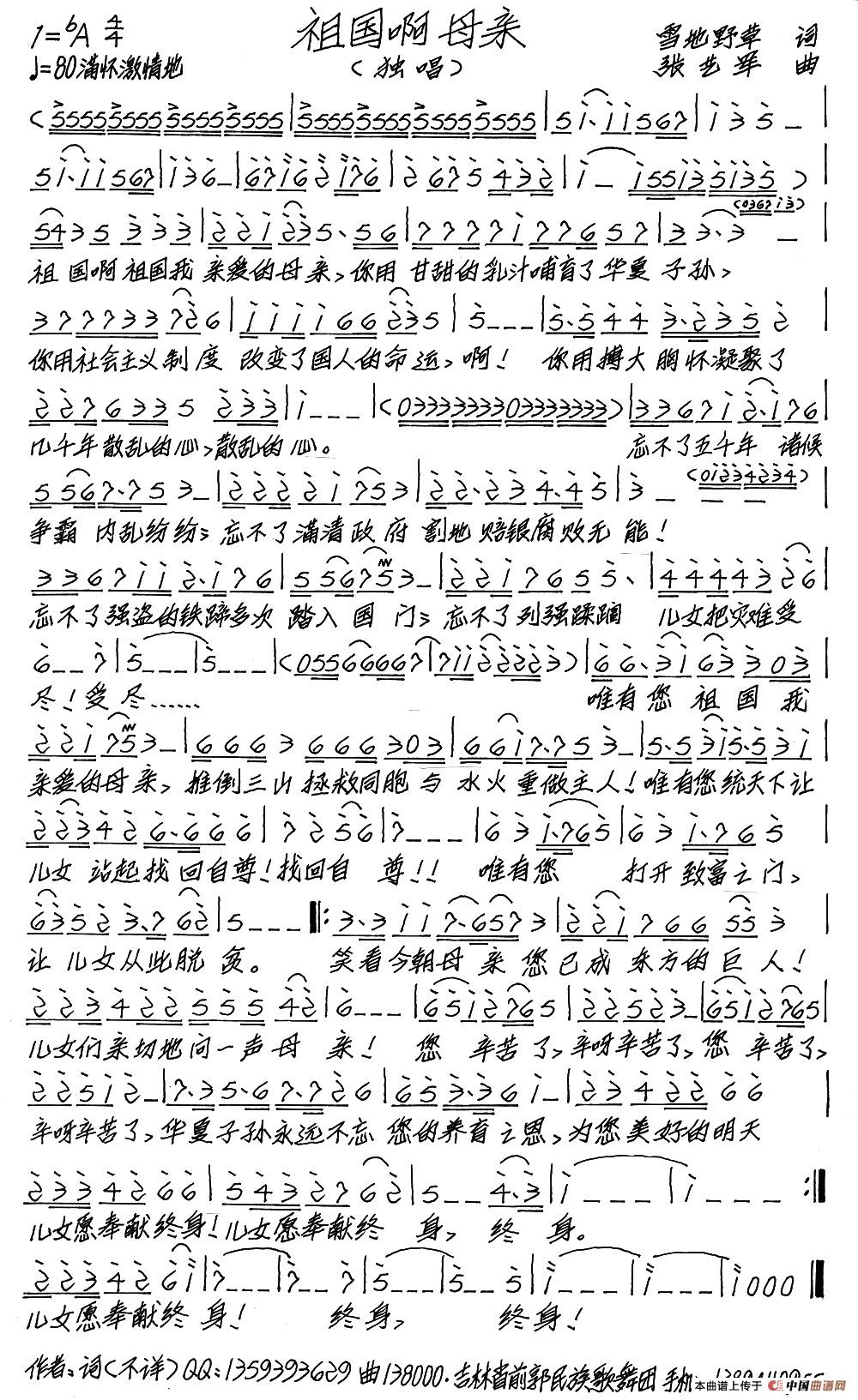 致谢:《中国曲谱网》衷心感谢作者老师馈赠原版歌谱!