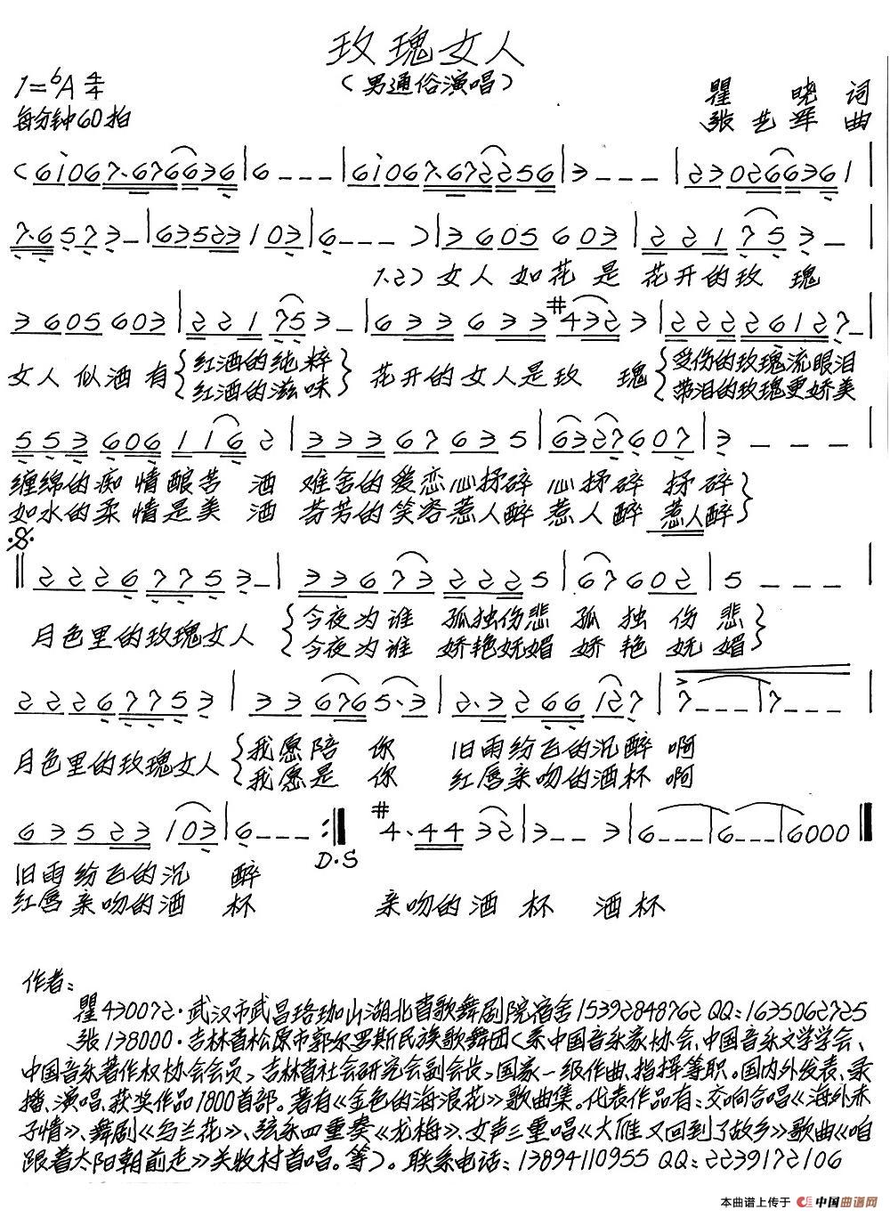 玫瑰女人(瞿晓词 张艺军曲)(1)_原文件名:玫瑰女人.jpg
