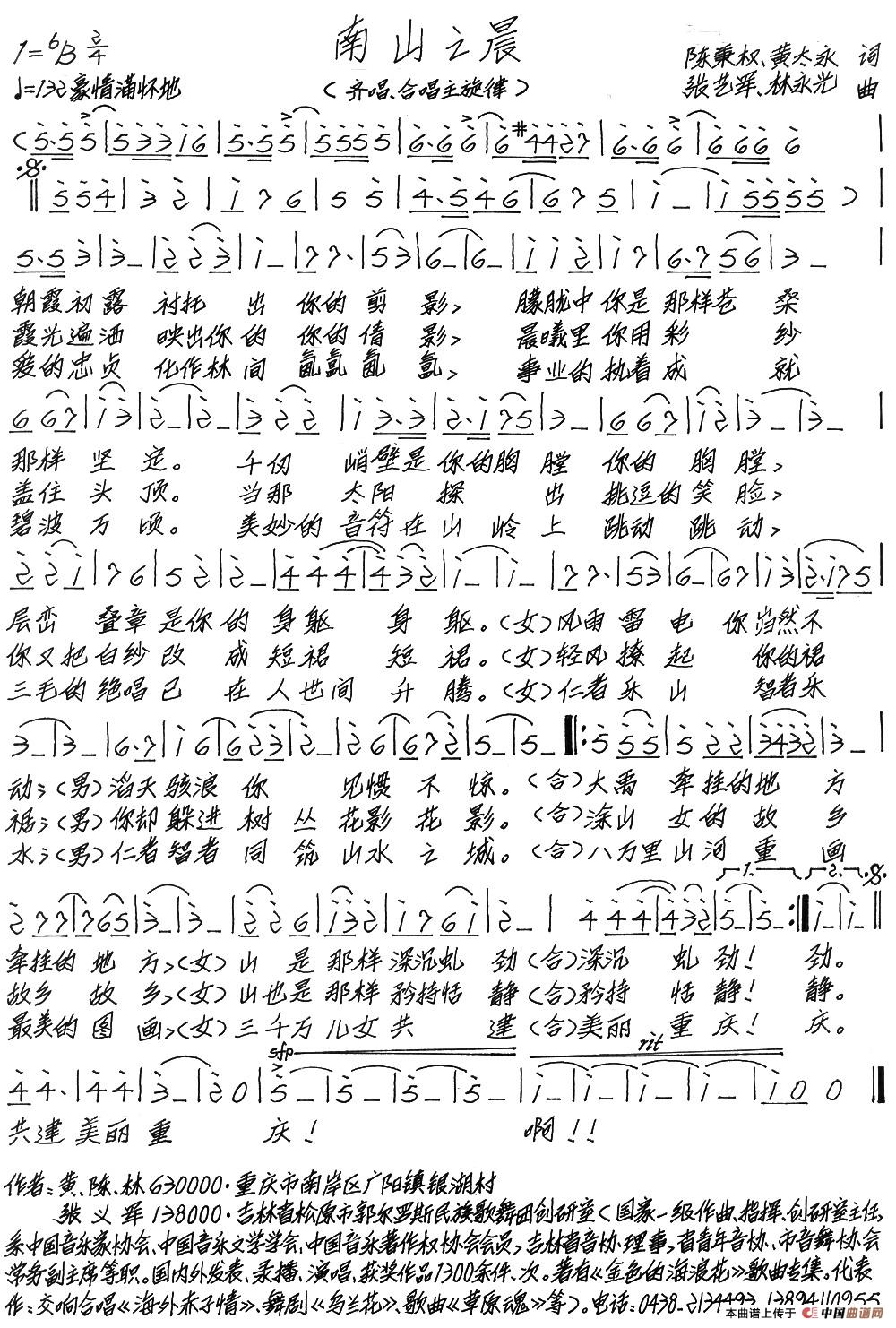 关于《南山之晨》曲谱的评论
