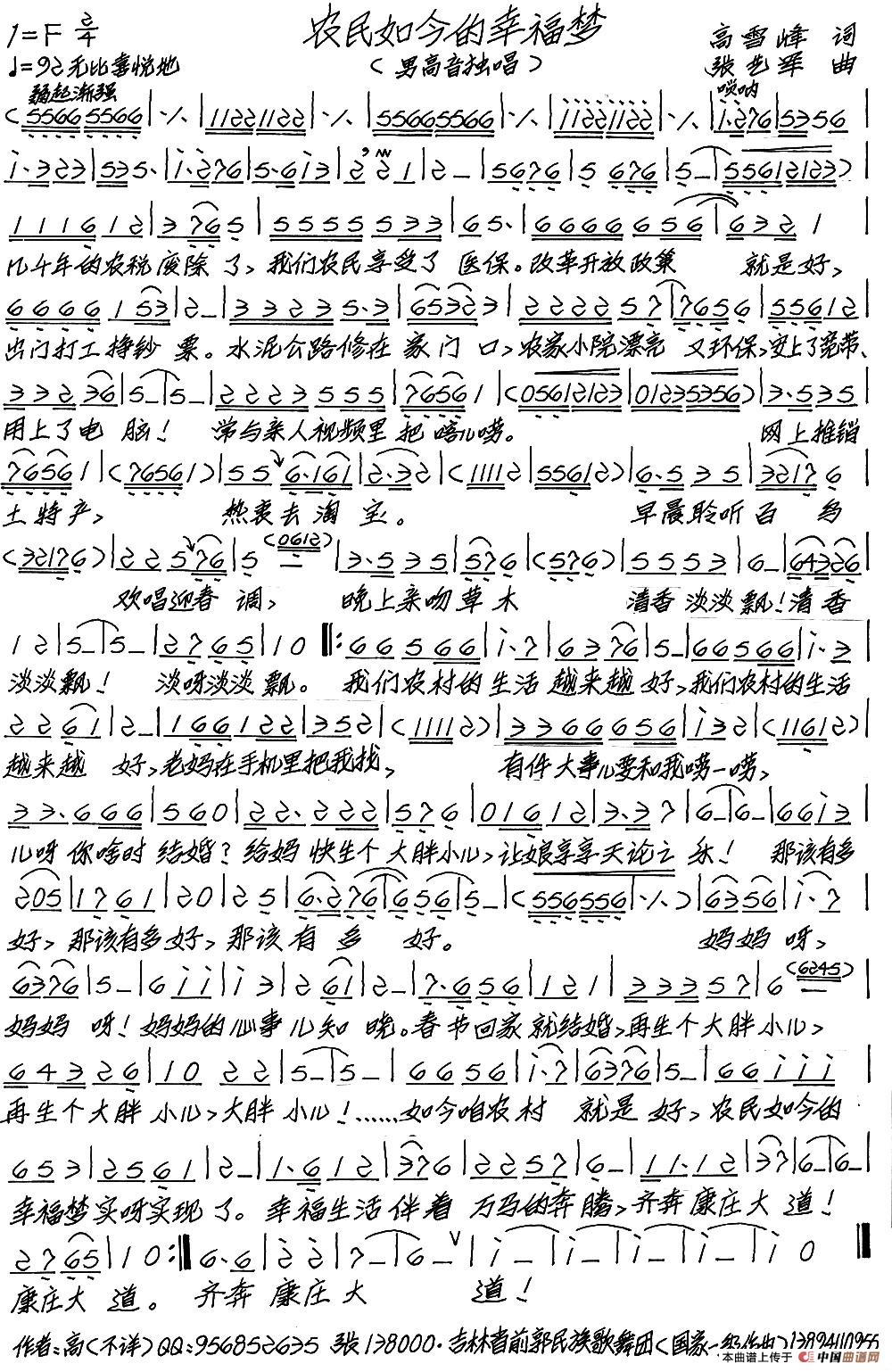 关于《农民如今的幸福梦》曲谱的评论