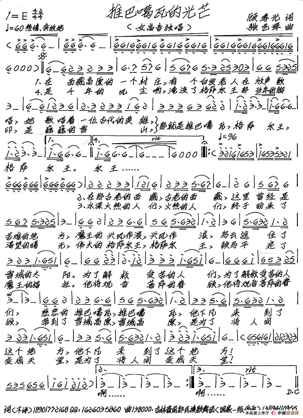 致谢:《中国曲谱网》衷心感谢作者老师馈赠原版歌谱!