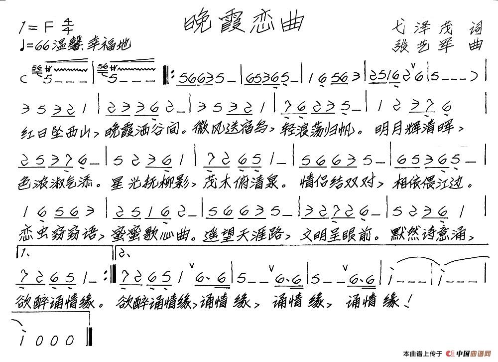 致谢:《中国曲谱网》衷心感谢作者老师馈赠原版歌谱!