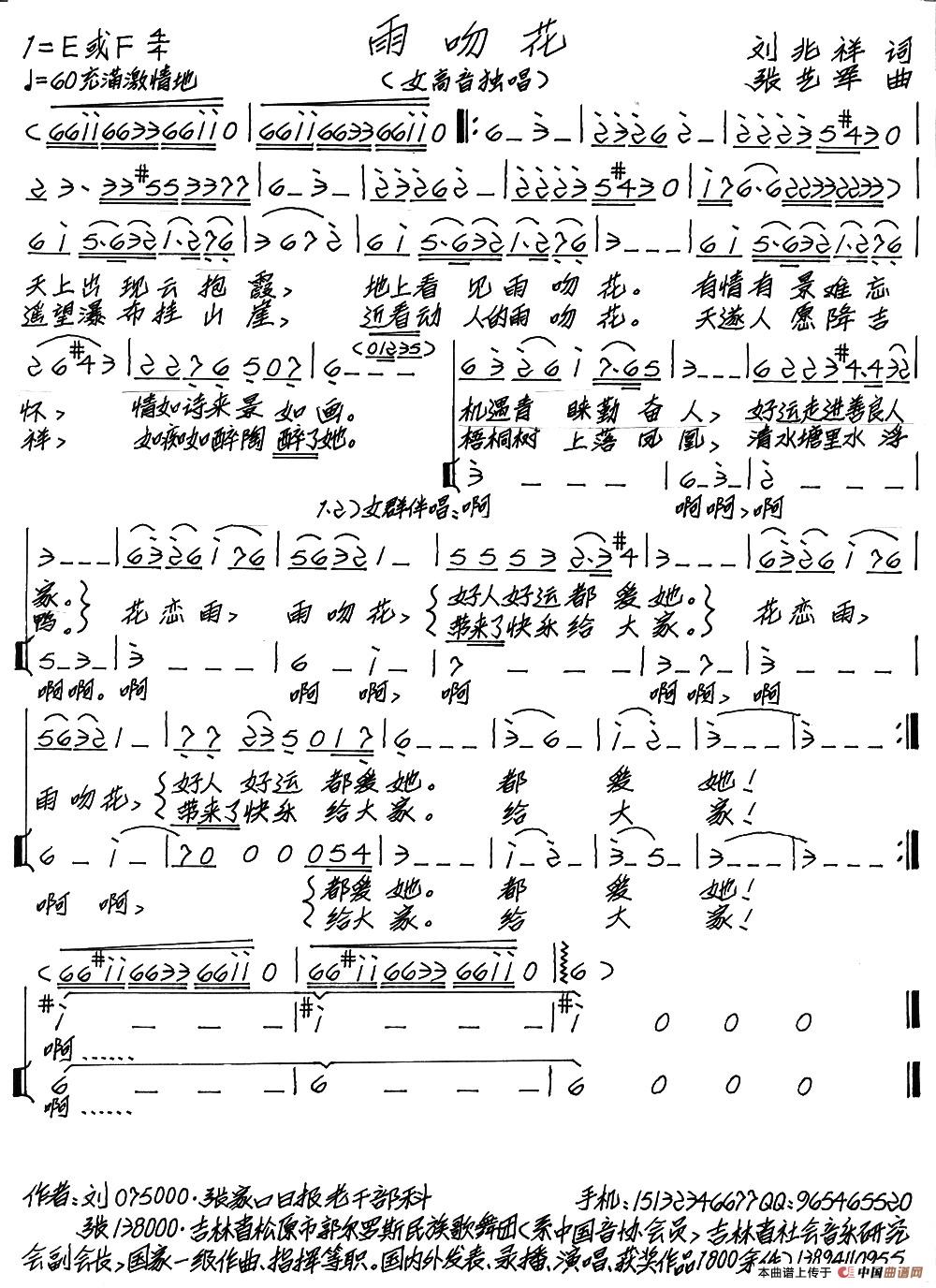 致谢:《中国曲谱网》衷心感谢作者老师馈赠原版歌谱!