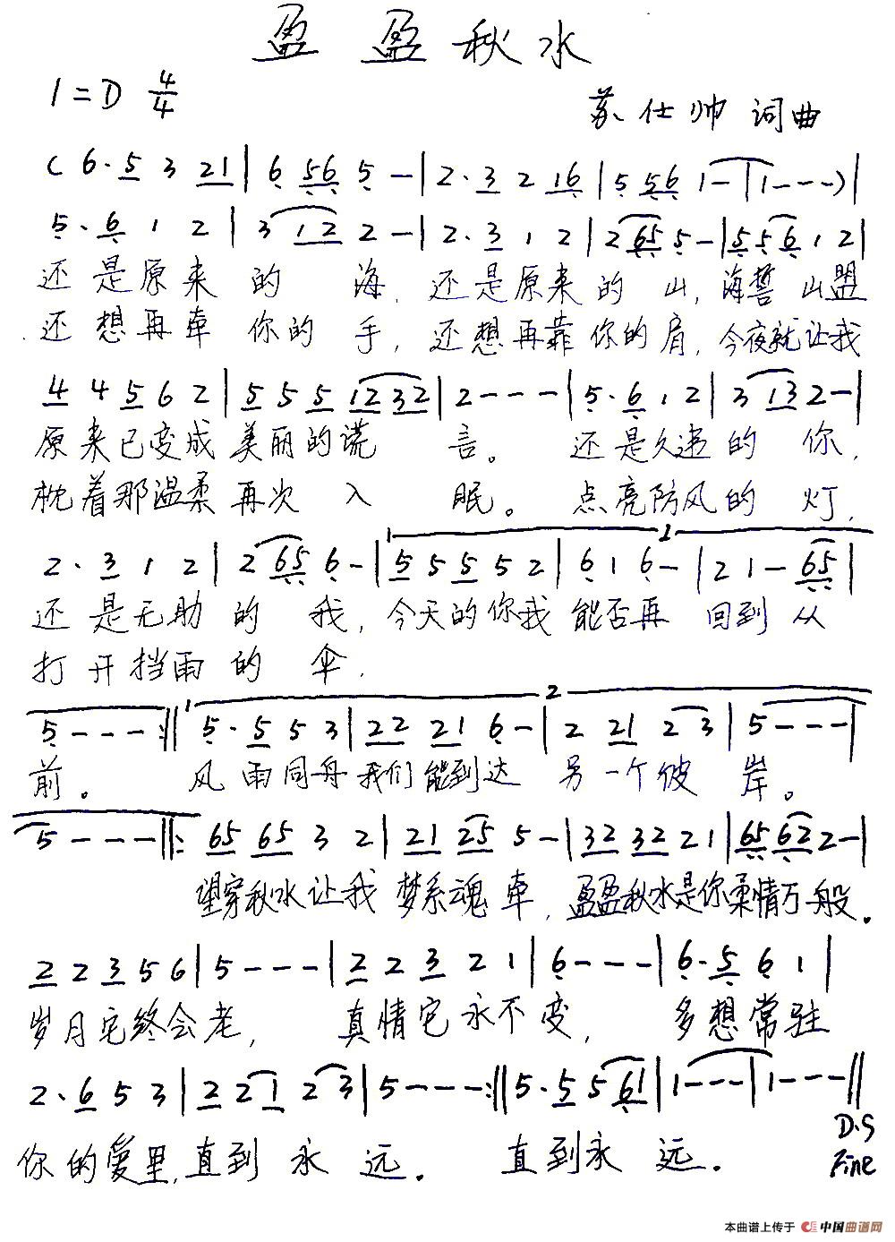 关于《盈盈秋水》曲谱的评论