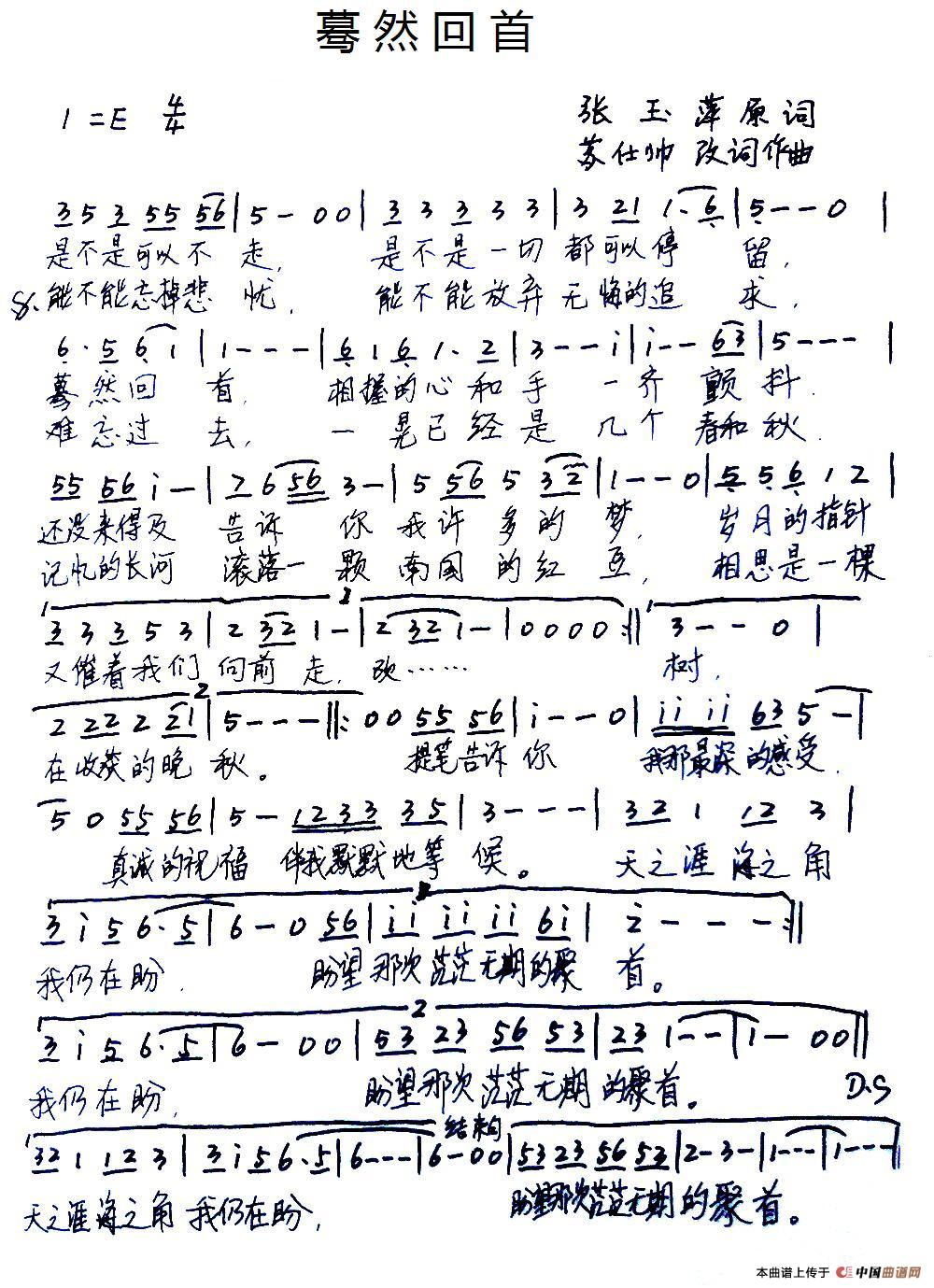 关于《蓦然回首》曲谱的评论