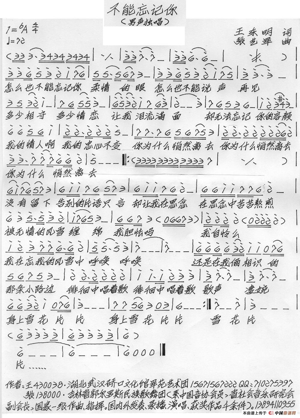 致谢:《中国曲谱网》衷心感谢作者老师馈赠原版歌谱!