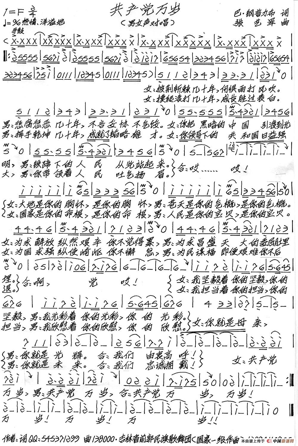 致谢:《中国曲谱网》衷心感谢作者老师馈赠原版歌谱!
