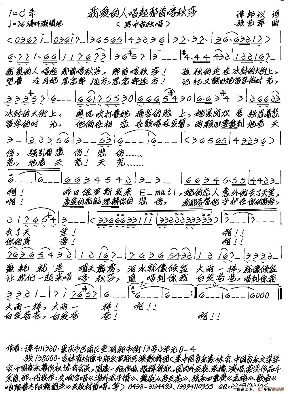 致谢:《中国曲谱网》衷心感谢作者老师馈赠原版歌谱!
