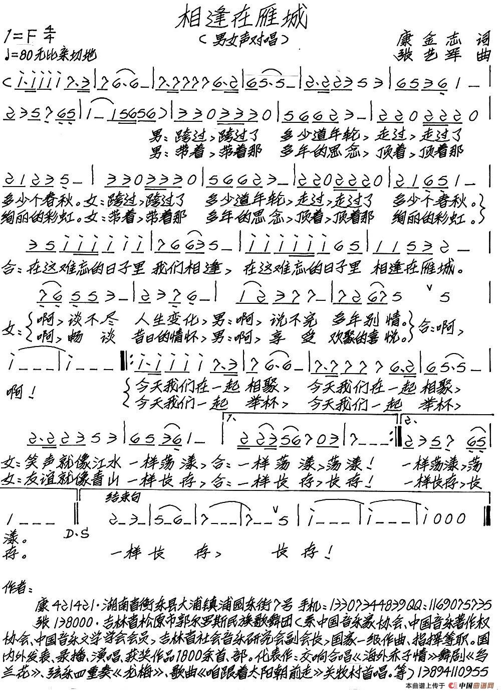 致谢:《中国曲谱网》衷心感谢作者老师馈赠原版歌谱!