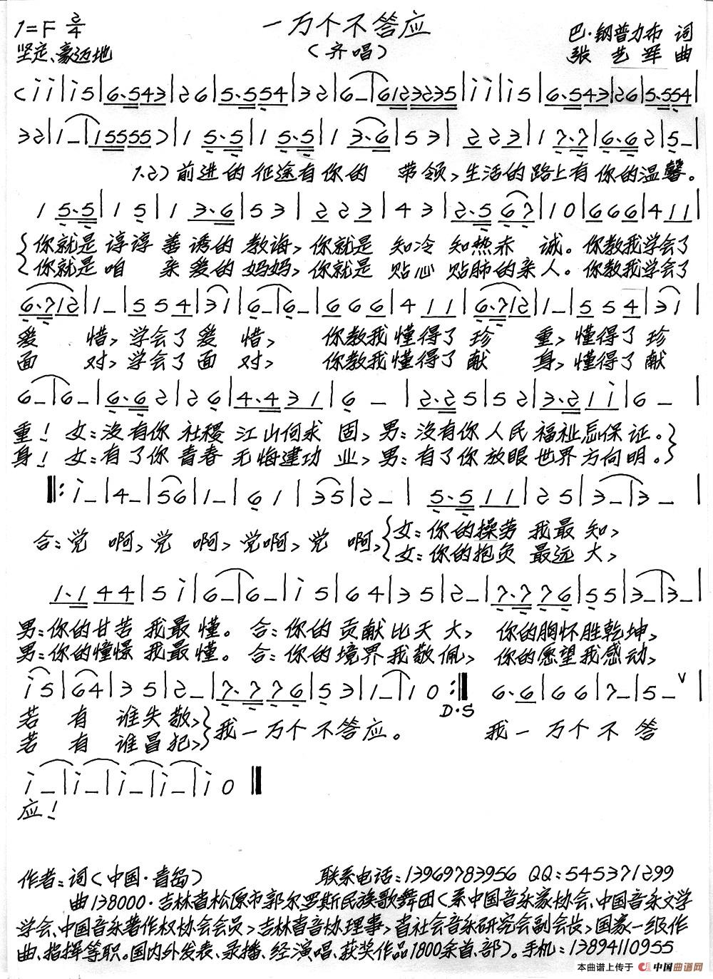 关于《一万个不答应》曲谱的评论