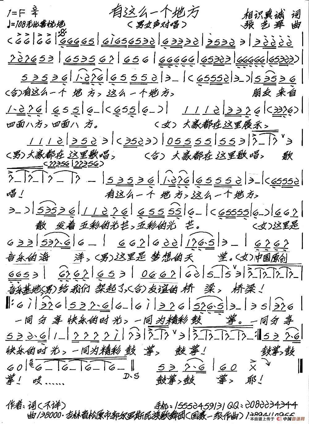 致谢:《中国曲谱网》衷心感谢作者老师馈赠原版歌谱!