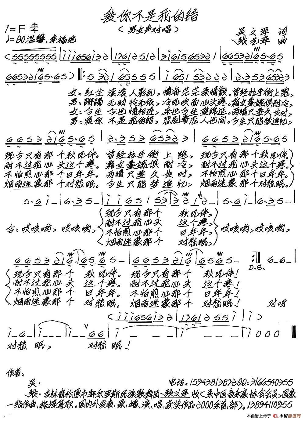 致谢:《中国曲谱网》衷心感谢作者老师馈赠原版歌谱!