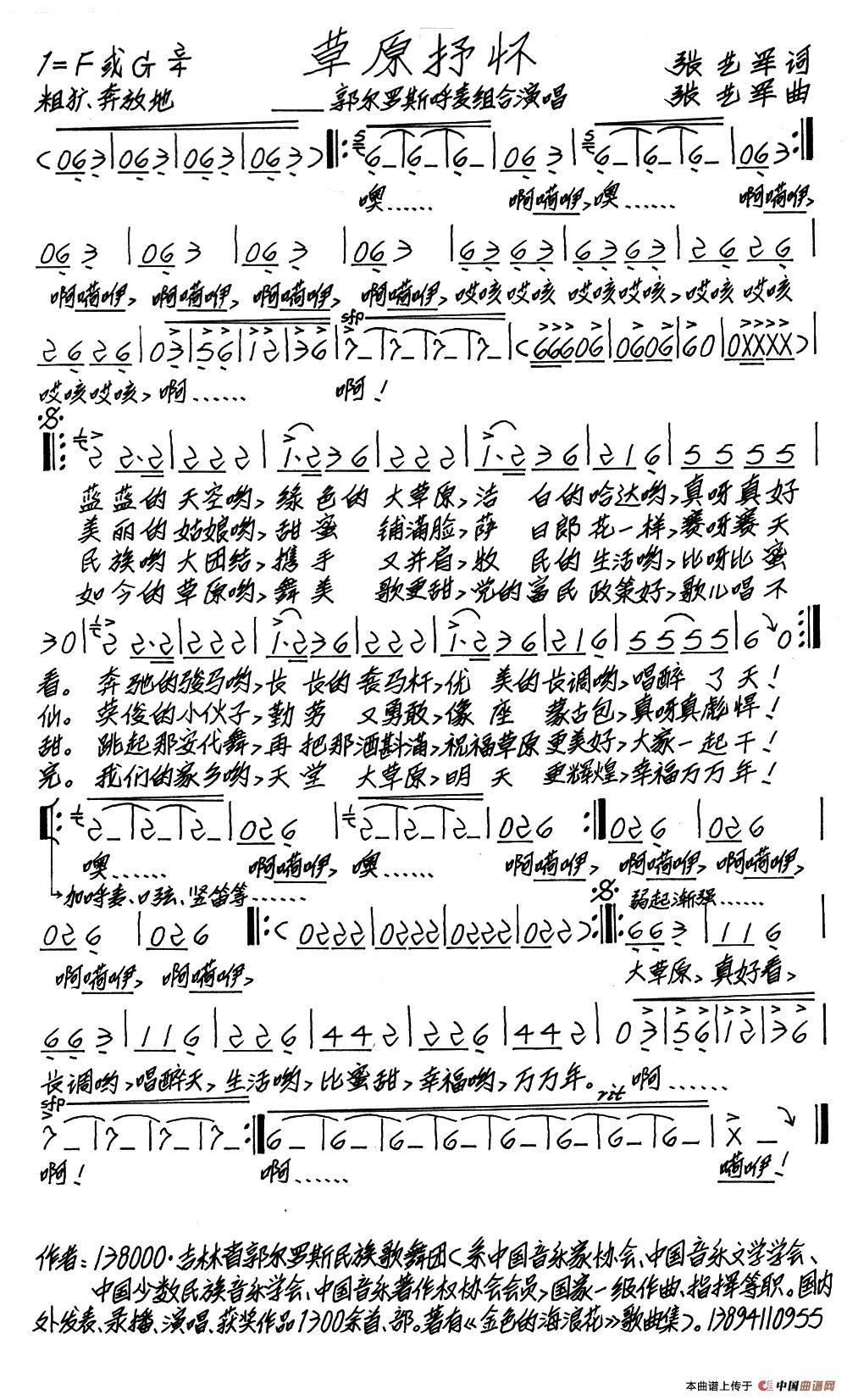 致谢:《中国曲谱网》衷心感谢作者老师馈赠原版歌谱!