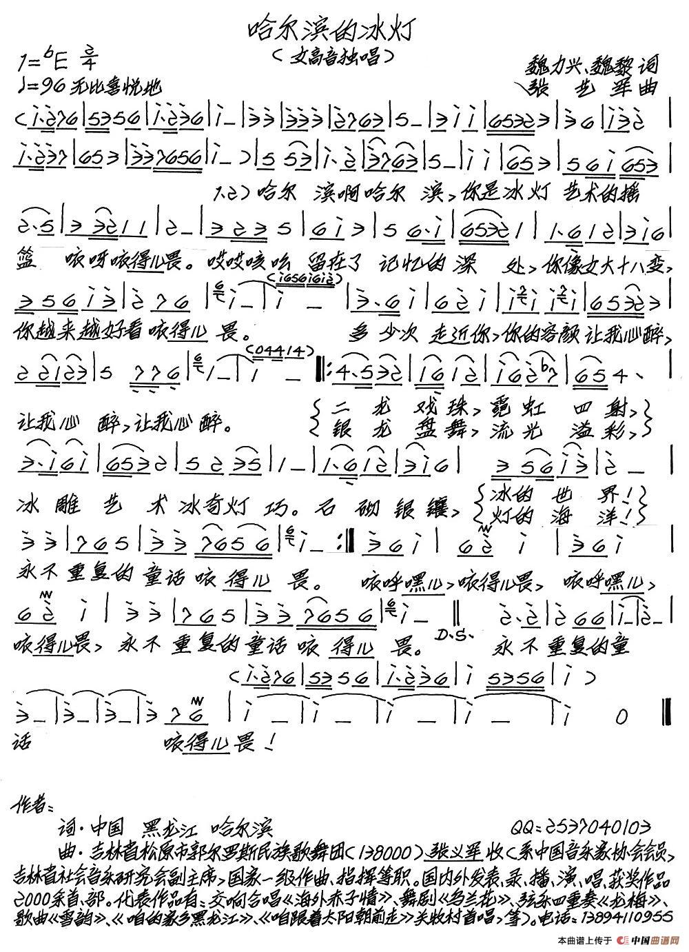 致谢:《中国曲谱网》衷心感谢作者老师馈赠原版歌谱!