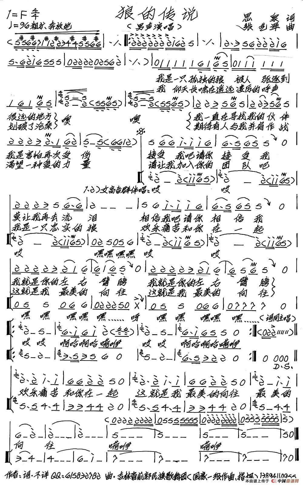致谢:《中国曲谱网》衷心感谢作者老师馈赠原版歌谱!