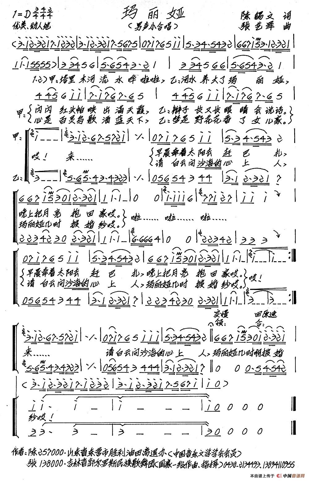 致谢:《中国曲谱网》衷心感谢作者老师馈赠原版歌谱!